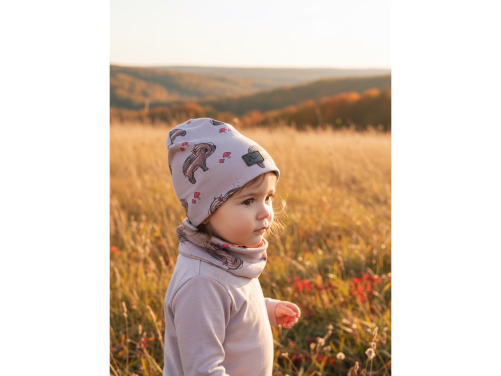Oboustranná čepice je ušita z bavlněné teplákoviny a podšita žebrovaným úpletem. Neladí někdy vzor s finálním outfitem? Stačí jen otočit a máte jednu barevnou čepičku.